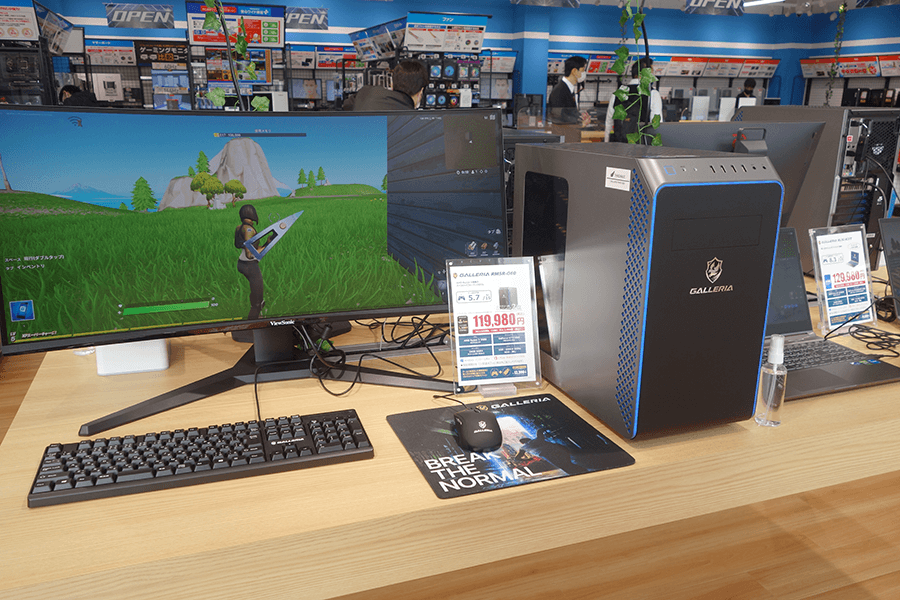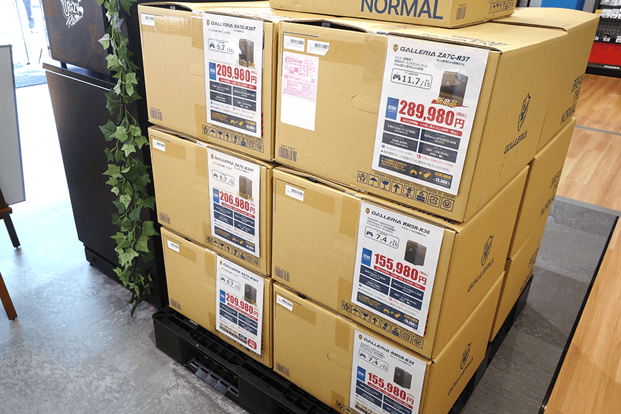 こちらは中古パソコン(デスクトップ)の陳列です。ニューバージョンのガレリアが並びます。