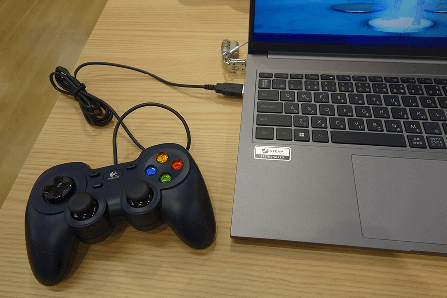 ゲーミングパッドが繋がれています。パッドプレイも試せます。