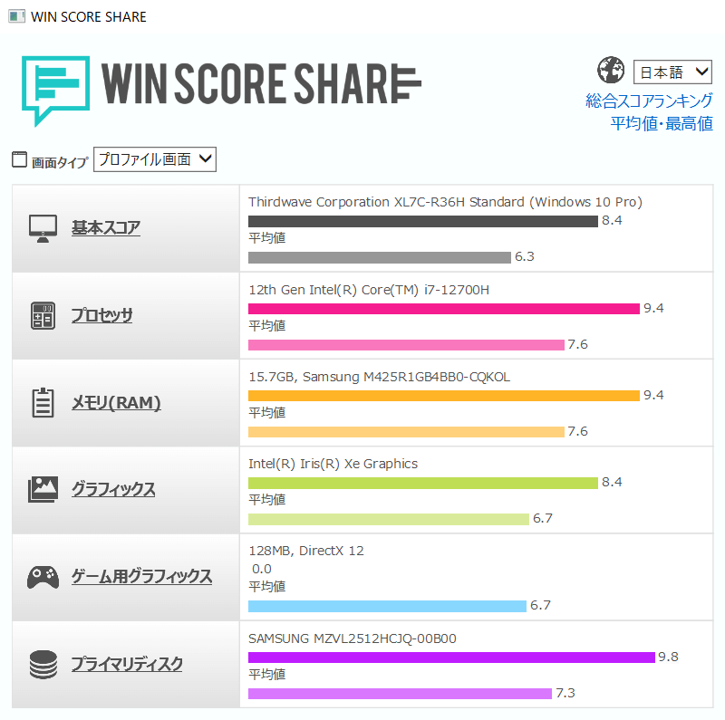 スコアは8.4と高い中でも、ボトルネックになっているのが内蔵グラフィックスなので実際の実力は数値以上ですね。